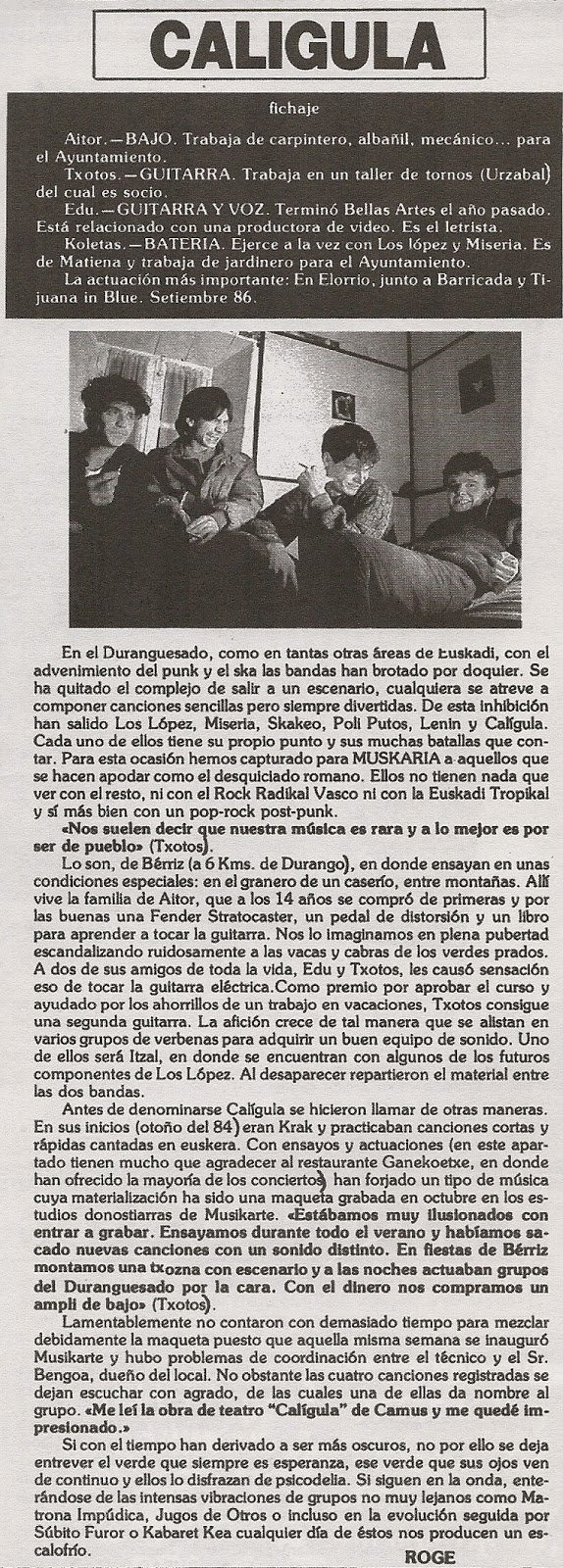 y CALIGULA,De todos hay algo de información así ke los mas kuriosos ya teneis donde buskar,De CALIGULA he enkontrado ésto en el fanzine MUSKARIA.